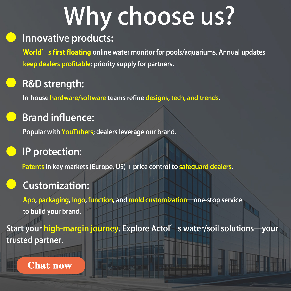 Actol (Shenzhen) Technology Co., Ltd Located in Shenzhen, the most innovative city in China, which is a professional pen type and online water quality testing, hydroponic system monitor, swimming pool water test , and soil PH meter .